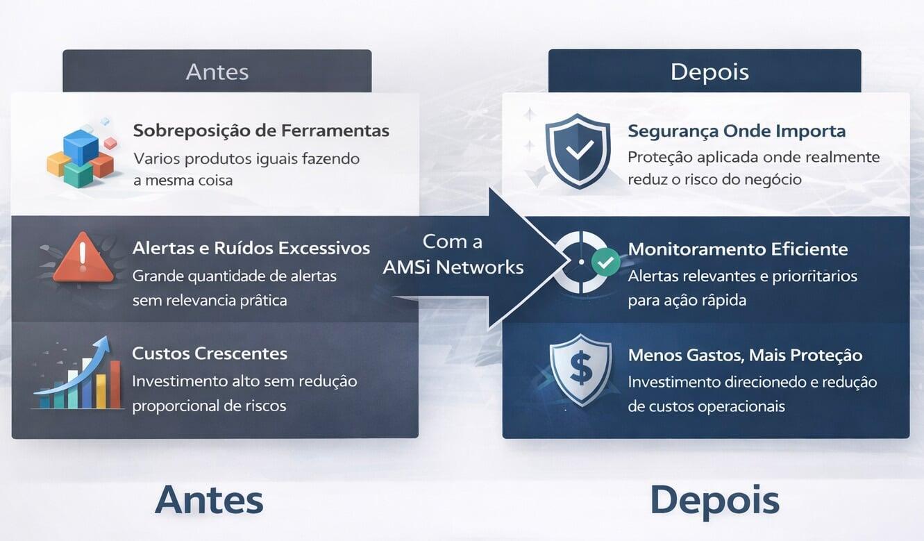 A cibersegurança eficaz não depende de mais ferramentas, mas de decisões corretas. A AMSi Networks aplica segurança com base em experiência prática, entendendo o negócio, os riscos reais e o impacto operacional antes de qualquer ação.