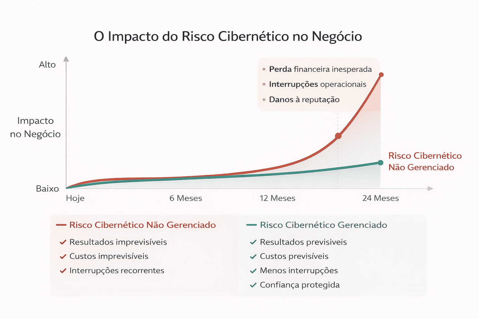 O risco cibernético não impacta apenas sistemas — ele afeta diretamente custos, operações e reputação.